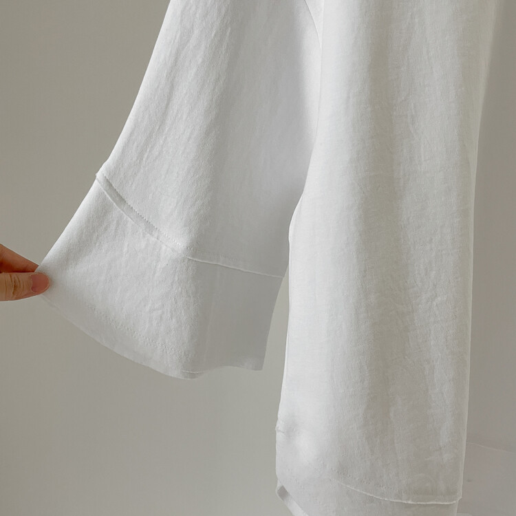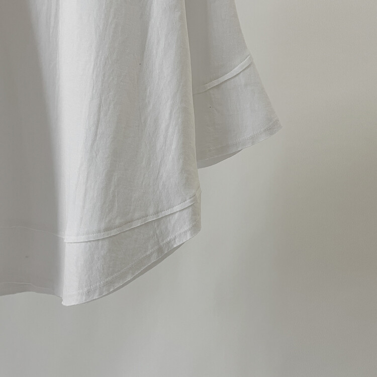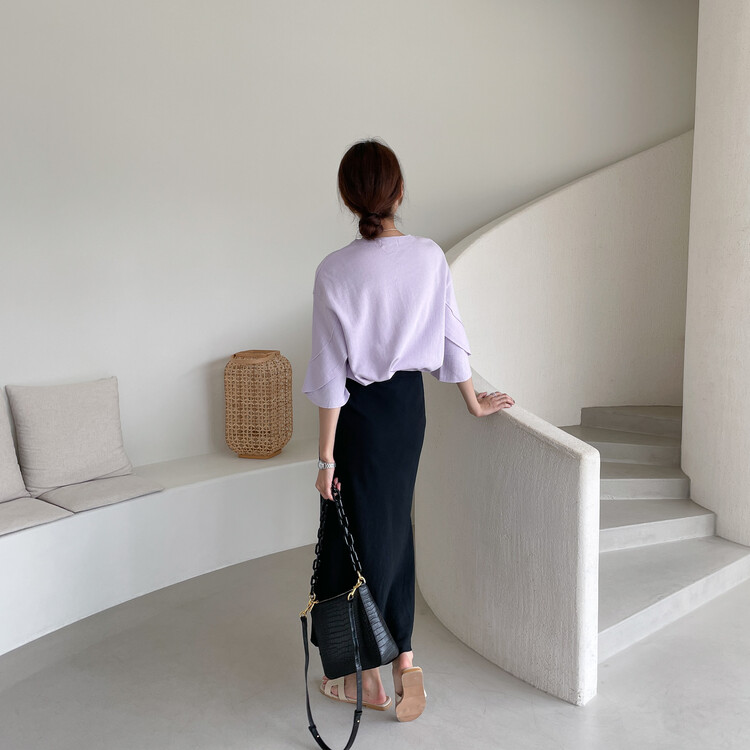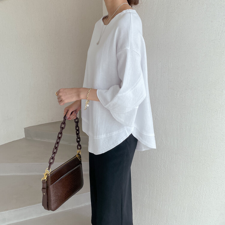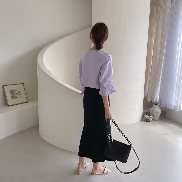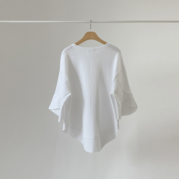 어깨라인부터 자연스럽게 떨어지는 튤립 모양의 소매통이